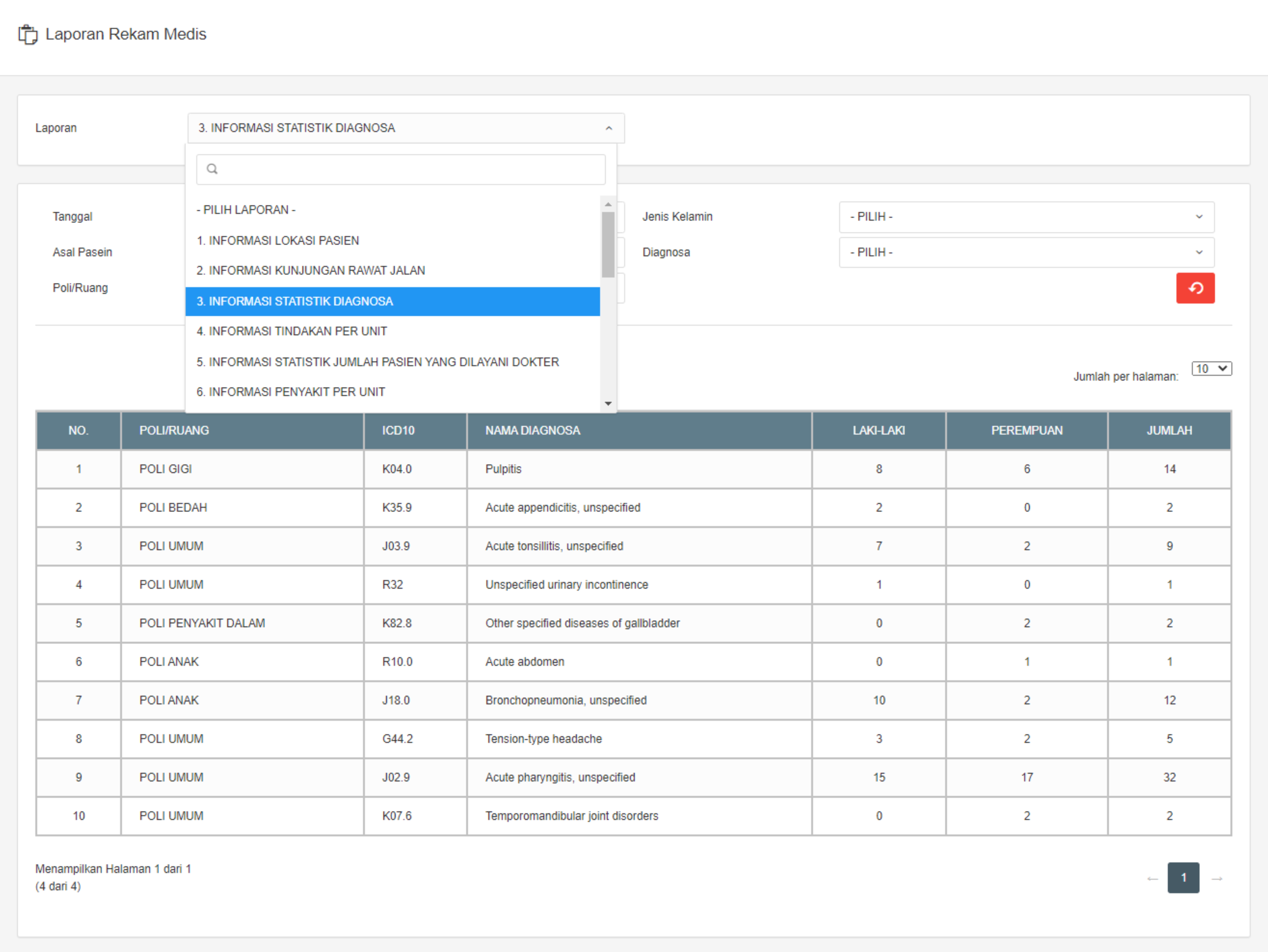 Software rumah sakit / klinik iMedis memiliki modul lengkap, dan terintegrasi mulai dari front-office hingga back-office. Dilengkapi dengan laporan (report) dari masing-masing modul, dengan format pelaporan (RL Report) yang telah disesuaikan dengan kebutuhan Kementrian Kesehatan.